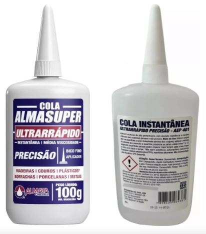 Modo de uso: limpe e seque bem as superfícies a serem trabalhadas (elimine óleo e sujeira); aplique o mínimo de adesivo que preencha a superfície; pressione as partes unidas entre 2 a 12 segundos (superfícies porosas podem requer maior tempo); após o uso, limpe o bico com papel e tampe,*não adere polietileno, polipropileno, polímeros flourados/ resinas ante aderentes (PTFE), superfícies siliconadas. Não recomendo para tecidos e EPS (isopor).