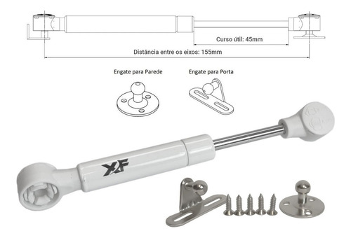 Kit com 2 Pistão a Gás Mini 155mm 80N 8Kg para Porta de Armário Basculante Branco XF