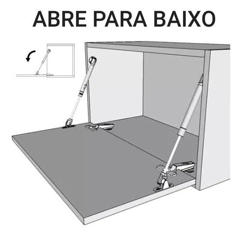 Kit com 8 Pistões a Gás Inverso 245mm 120N 12Kg para Porta de Armário Basculante Abre para Baixo Branco XF O pistão a gás inverso é utilizado em portas de armários basculantes, na qual ele auxiliar a abertura para baixo, tornando-se mais suave – Marca: XF – Fabricante: Vaz Ferragens – Referência: V10755-8X – Kit exclusivo com 8 pistões (4 par) – Comprimento: 245mm – Curso do Pistão: 90mm – Capacidade: 120N (12Kg) – Cor: Branca – Utilizado em portas de armários basculantes, na qual se permite a abertura para baixo – Permite uma abertura mais suave e silenciosa – Engate que facilita no momento da instalação – Design silencioso e deslizamento suave – Atenção: Não utilize óleo lubrificante ou similares, pode interromper o funcionamento do pistão – Deverão ser aplicados em conjunto com dobradiças, não incluso – Para cada tamanho e peso de porta é indicado um pistão, com força específica para que a porta abra adequadamente – Peso bruto: 120 gramas – Garantia: 90 dias