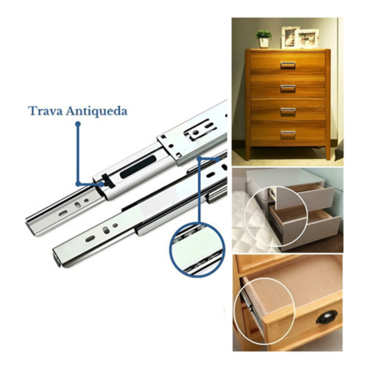 Par Corrediça Telescópica Amortecedor Trilho Gaveta 40cm